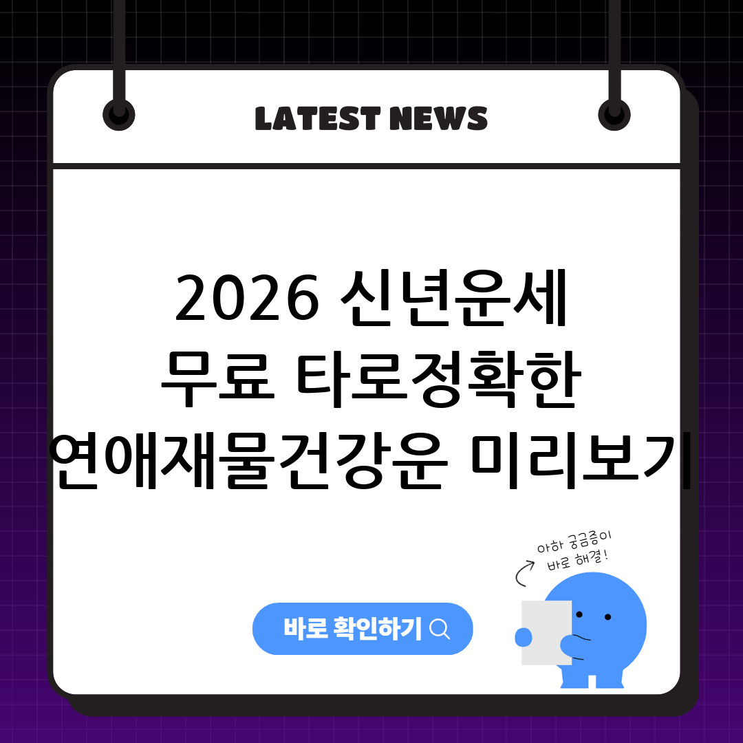 2026 신년운세 무료 타로|정확한 연애·재물·건강운 미리보기는 다가올 미래를 현명하게 대비하려는 분들에게 가장 중요한 키워드입니다. 이 글을 끝까지 읽으시면 검증된 사이트 활용법부터 연애, 재물, 건강운을 정확하게 해석하는 노하우까지 한 번에 얻어가실 수 있어, 다가올 2026년을 성공적으로 설계하는 데 큰 도움이 될 것입니다.